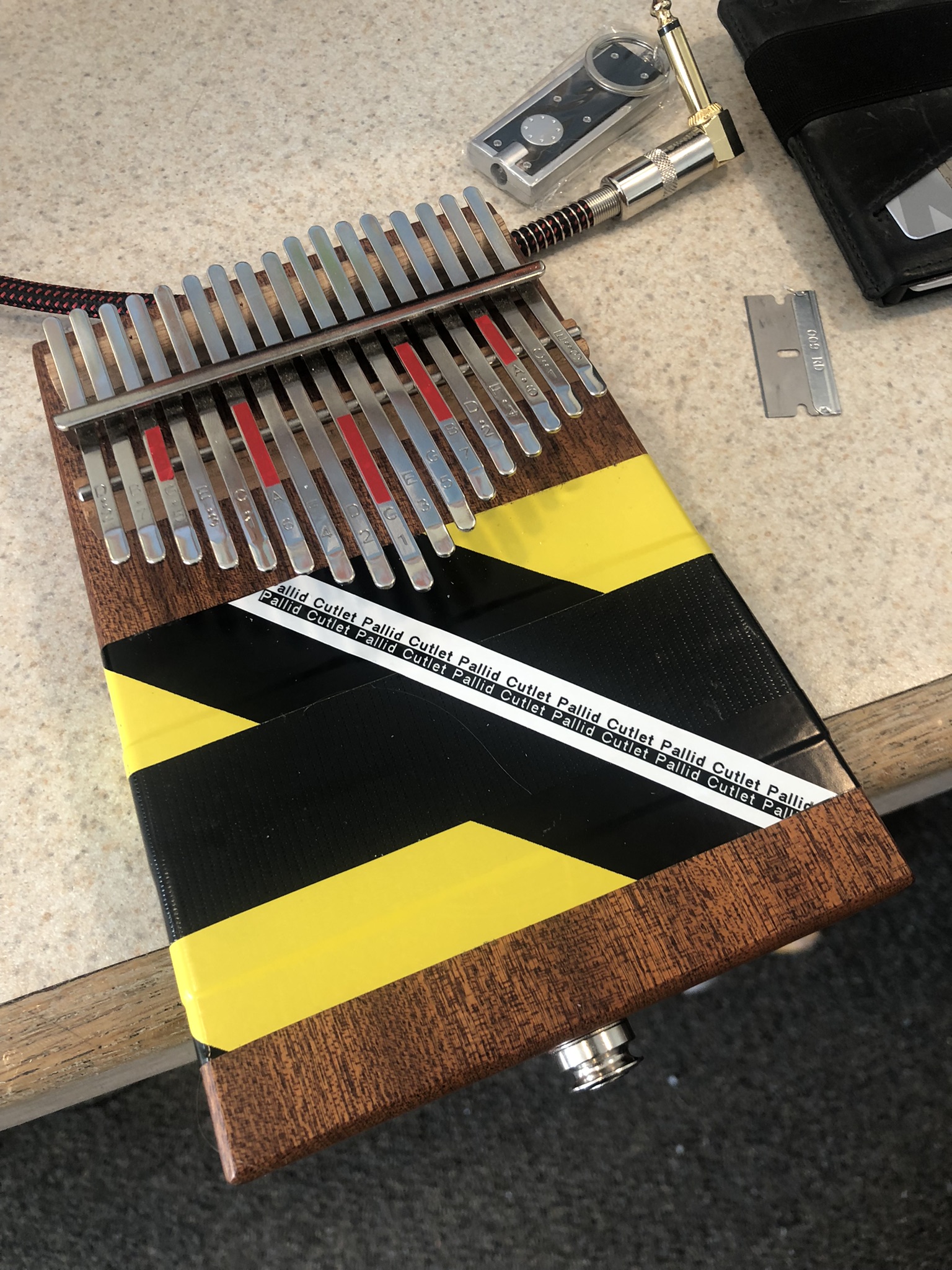 Technical steps completed, all that was left was to tape her back together and give her a name! Since I had been inspired by Lottie Canto to make a lovingly shitty rip-off of his Colour Palette, I decided to name my Mk.1 Electric Kalimba the Pallid Cutlet!